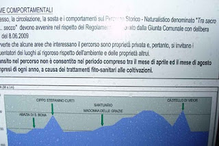 | cartello che vietano il passaggio tre i vigneti da aprile ad agosto..troppi trattamenti…(zona vidor) |