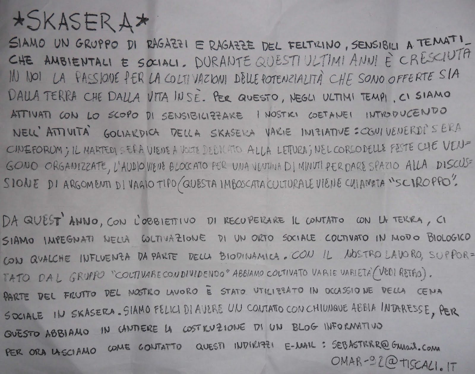 CI SONO ANCHE I RAGAZZA DELLA SKASERA.. CHE CI PARLERANNO DEL LORO “ORTO COMUNE