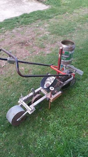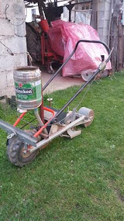 Si tratta di una seminatrice fai da te come si può ben vedere :-), ideata con un po di ingegno e buona volontà.