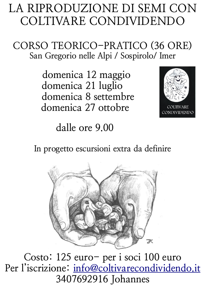 Un corso approfondito teorico/pratico per riprodurre e selezionare i semi in un’ottica partecipativa escludendo la chimica di sintesi. Un percorso che parte dalla biologia del seme arrivando ai metodi di selezione.